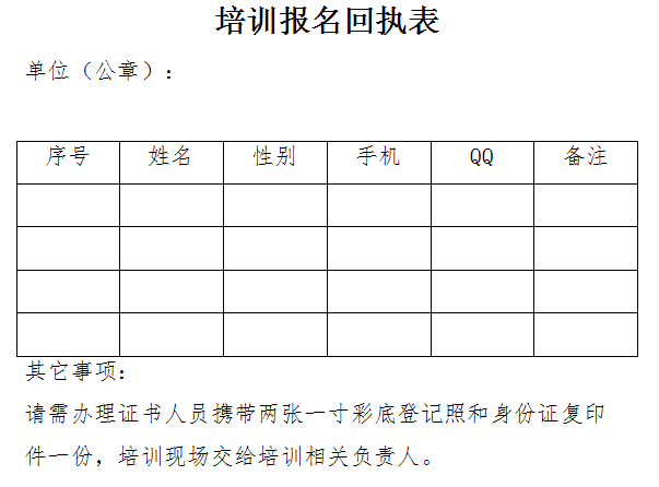 报名方式:请详细填写《培训报名回执表》,发至邮箱917455638@qq.com